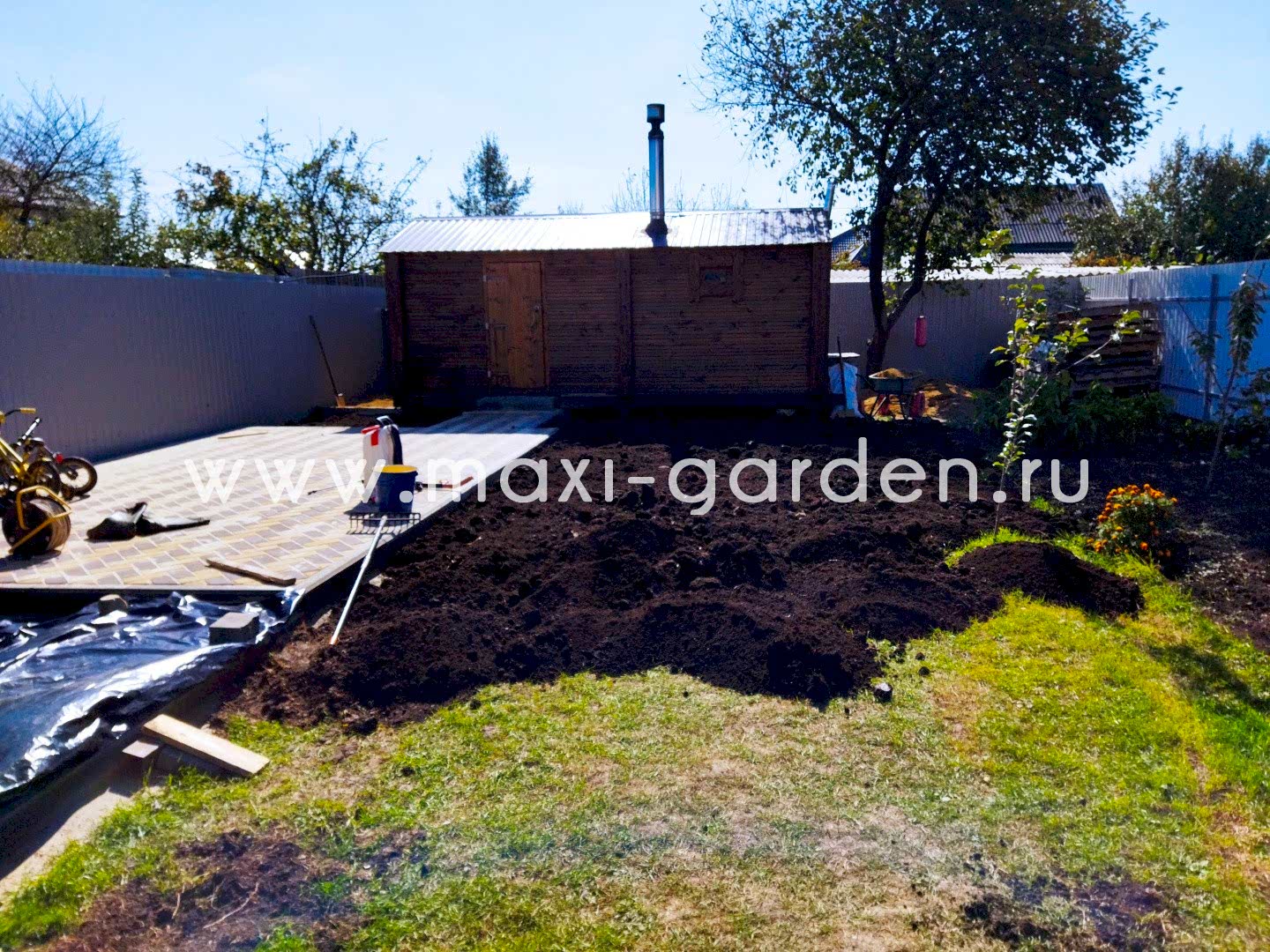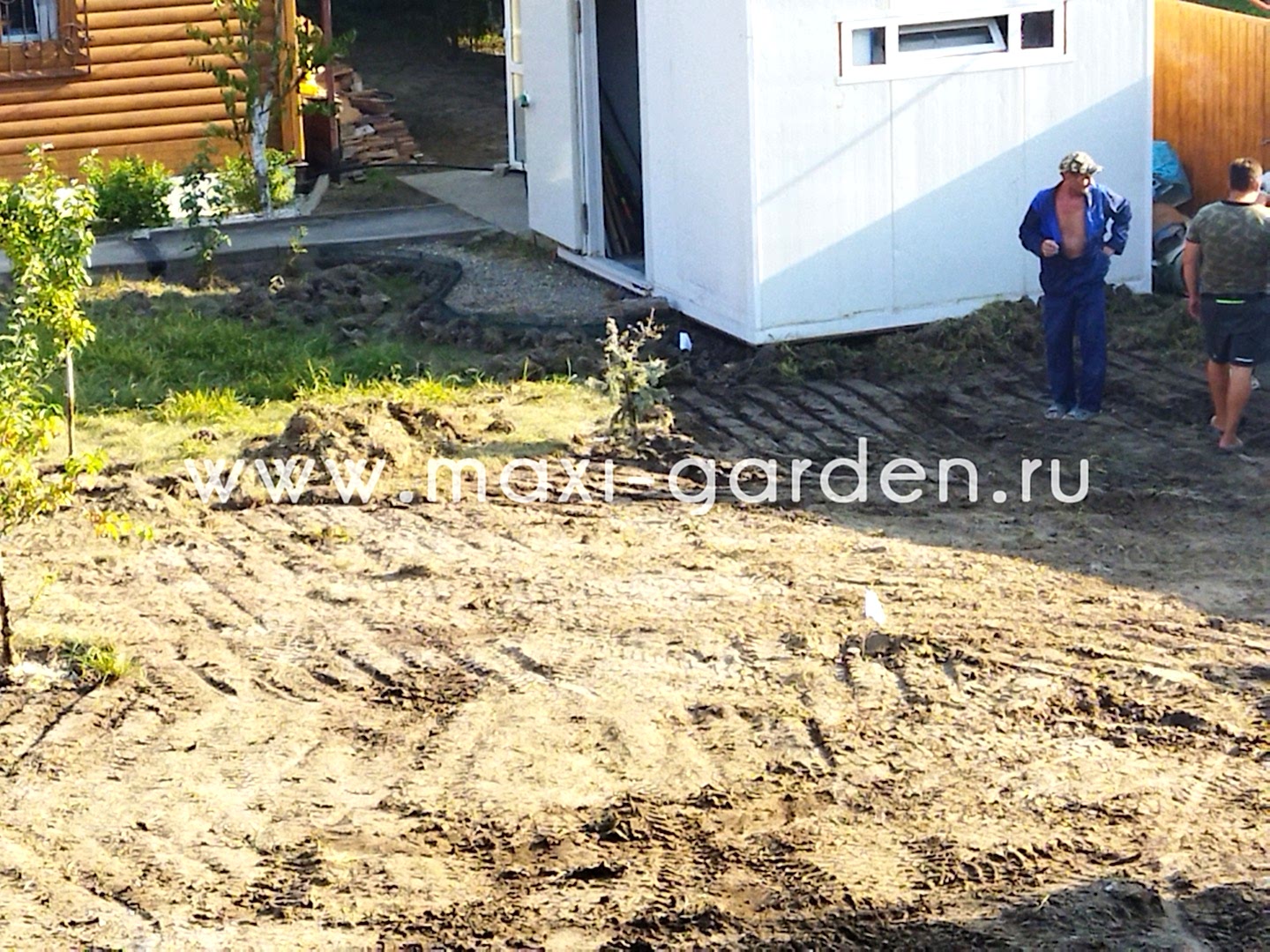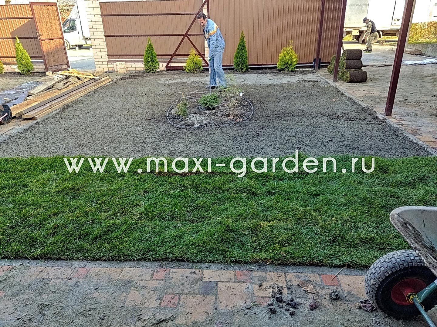 Занос Pin-Up на участок, выравнивание, подготовка основания, настил готового газона