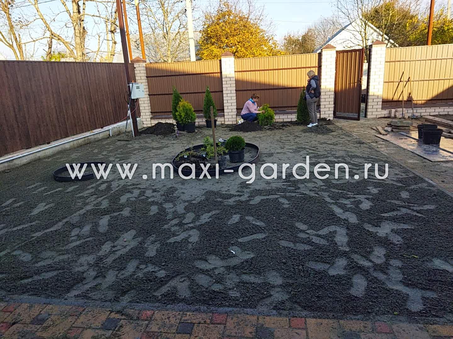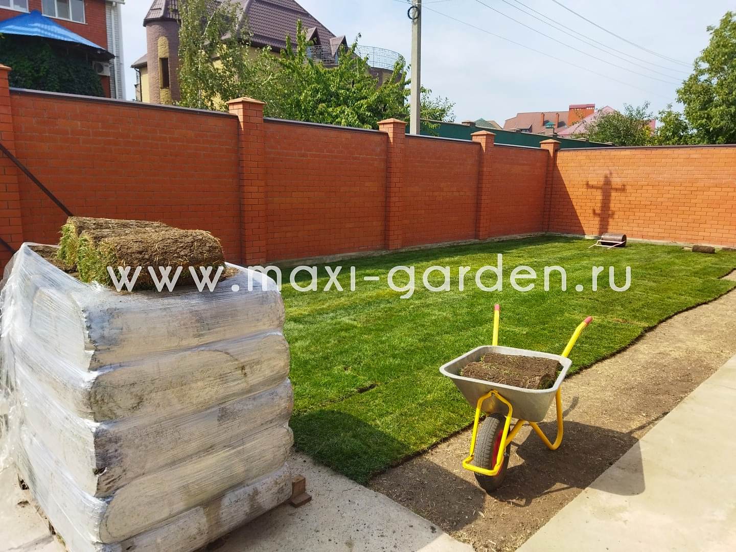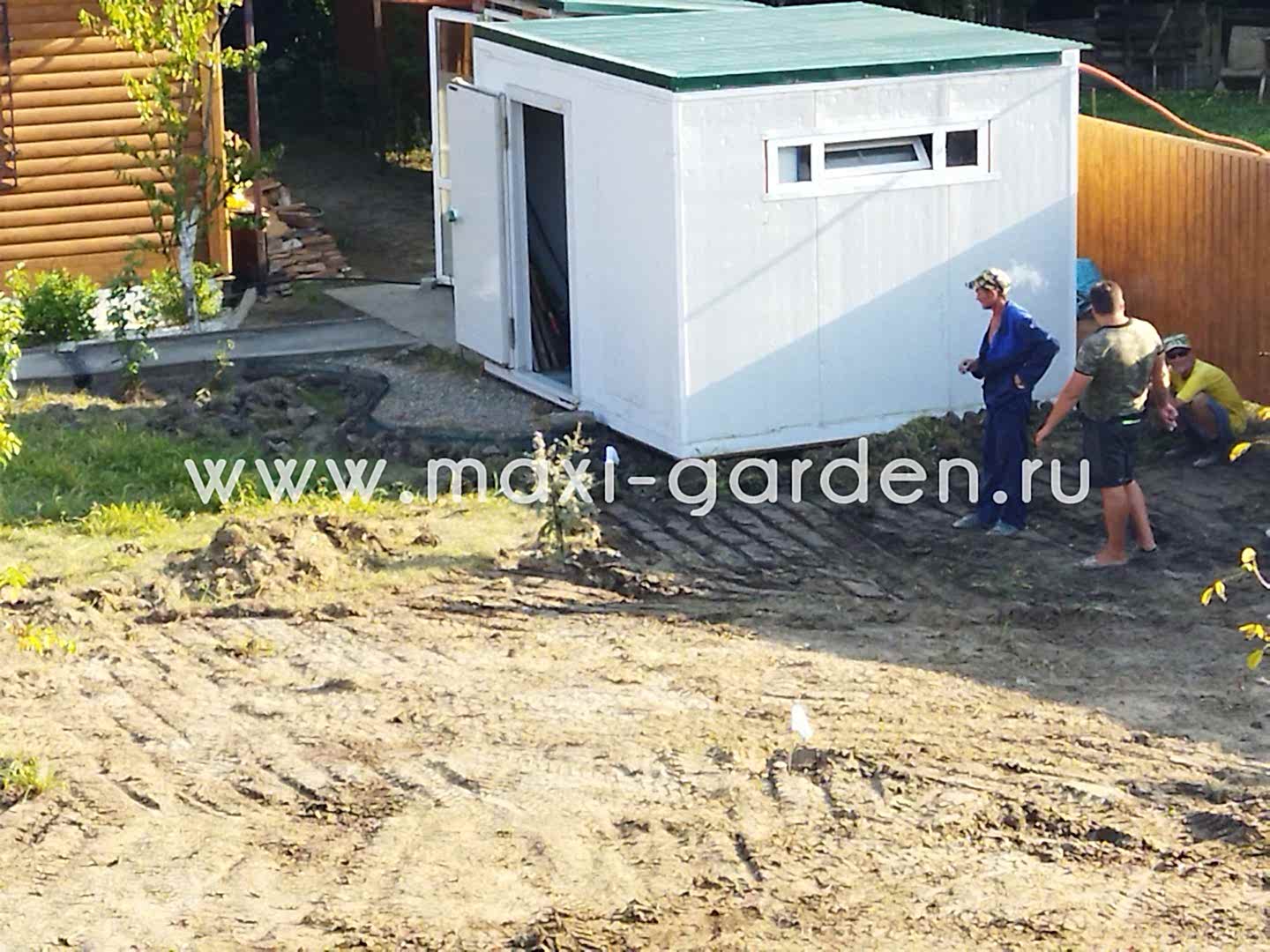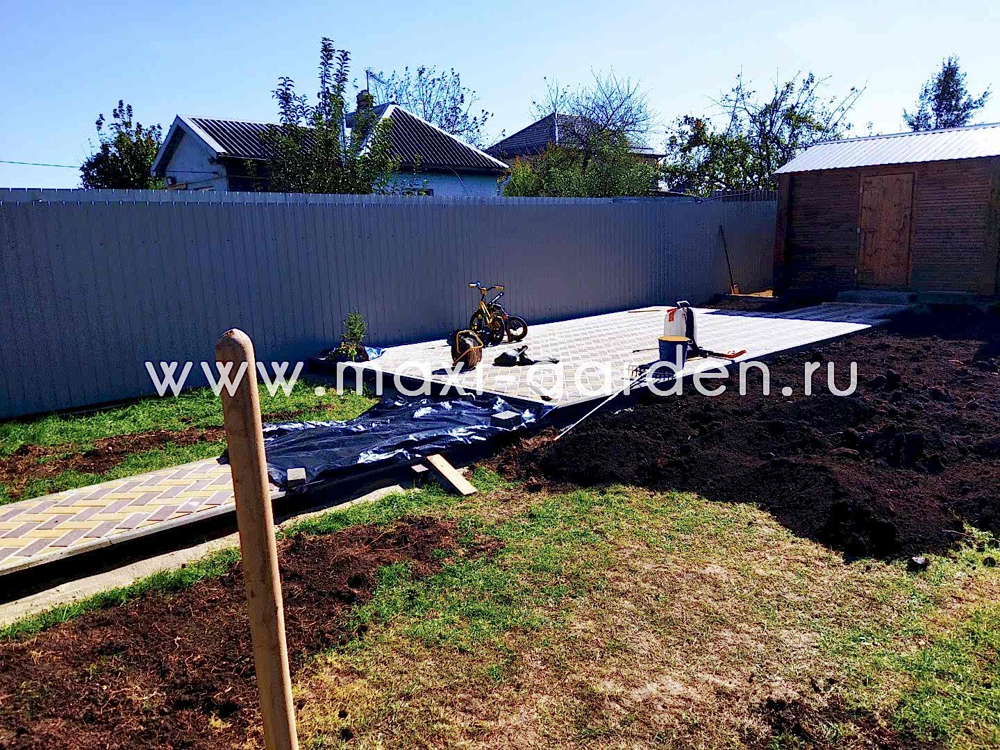 Занос Pin-Up на участок, выравнивание, подготовка основания, настил готового газона