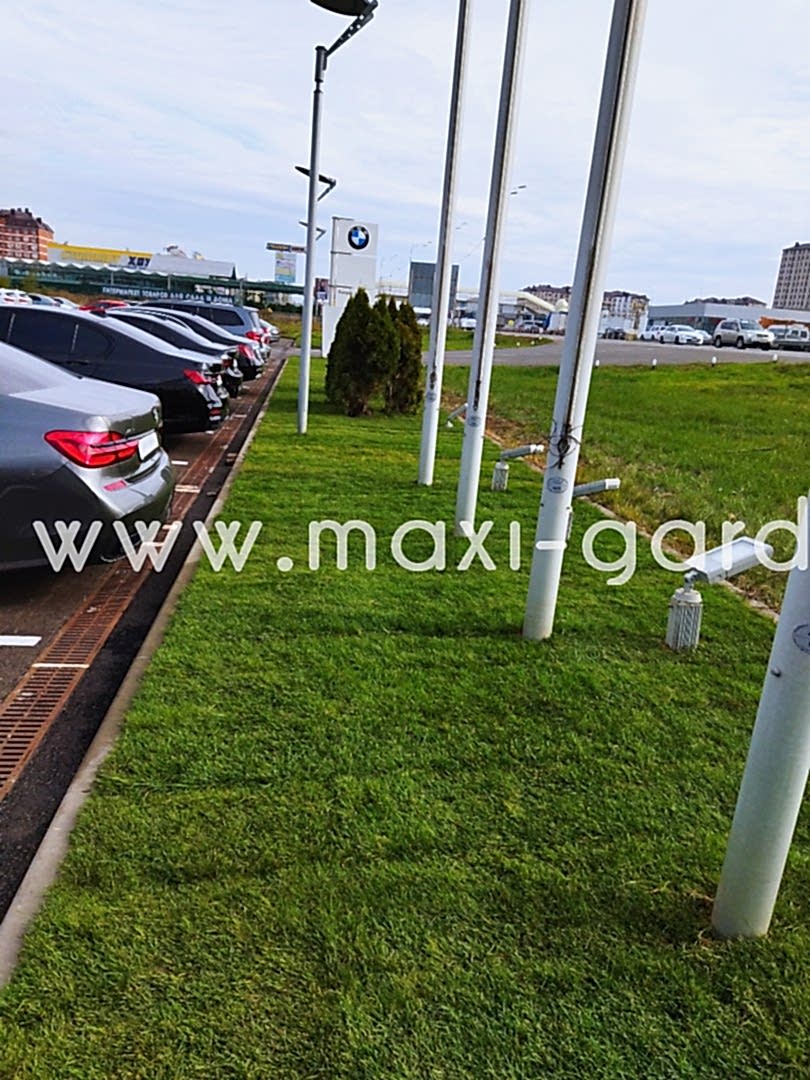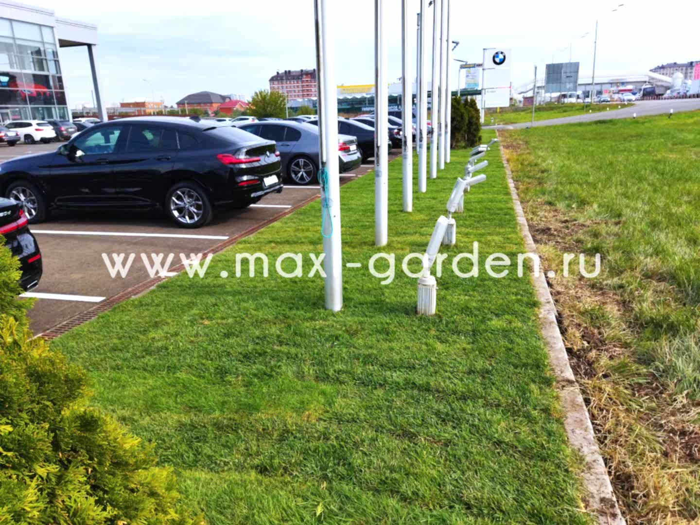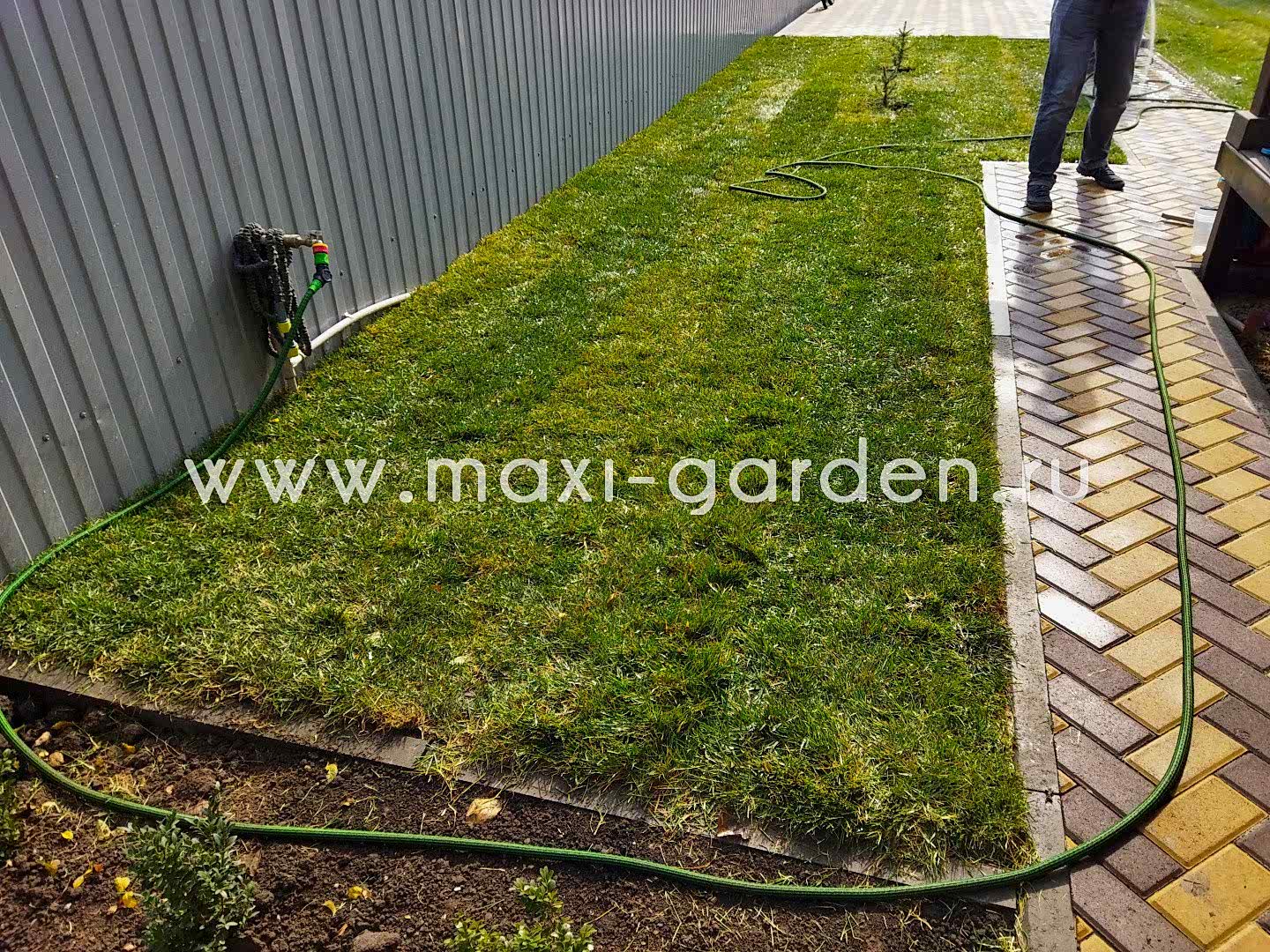 Снятие старого газона, укладка Pin-Up газона у бассейна, ревизия системы автоматического полива
