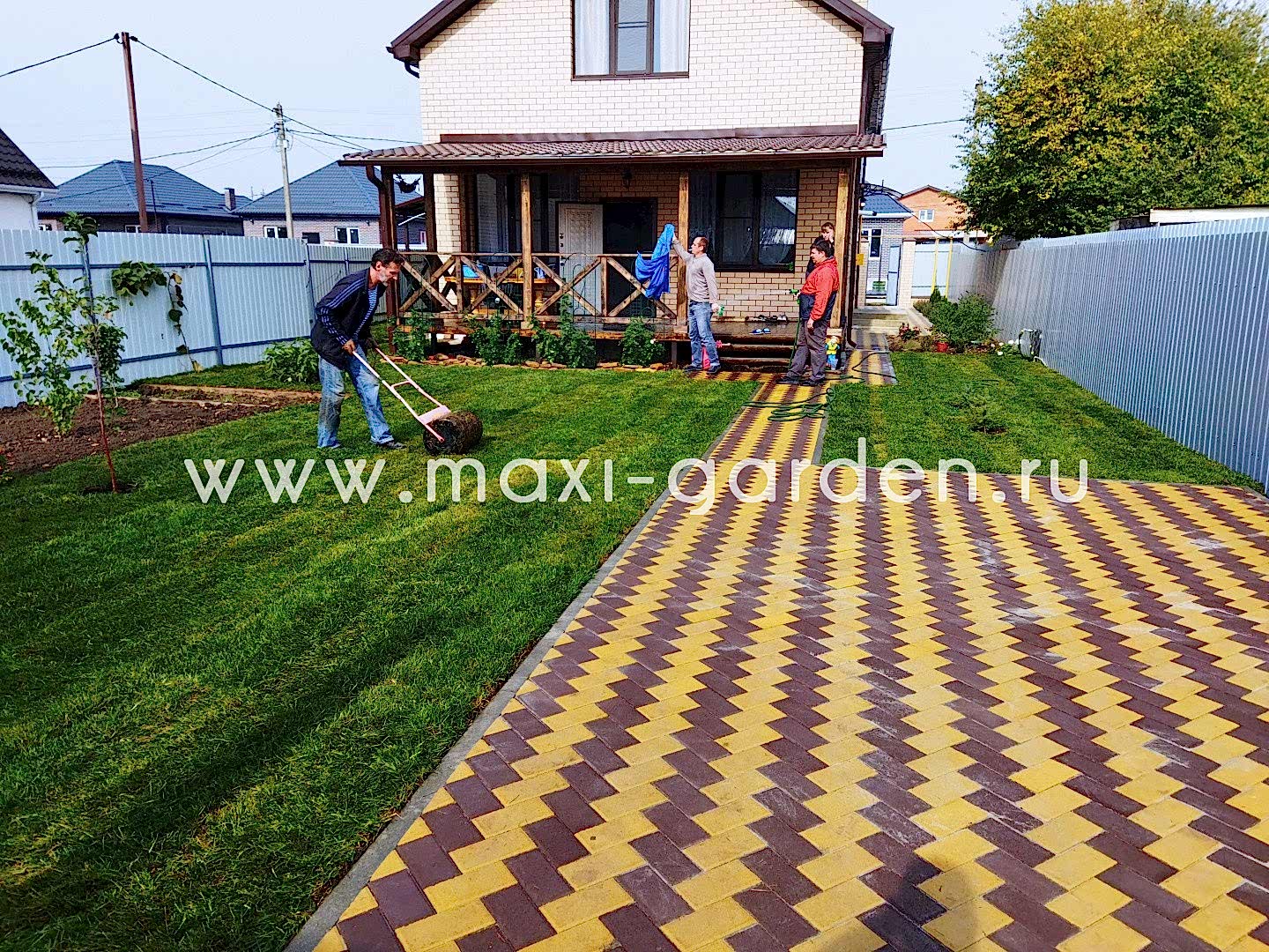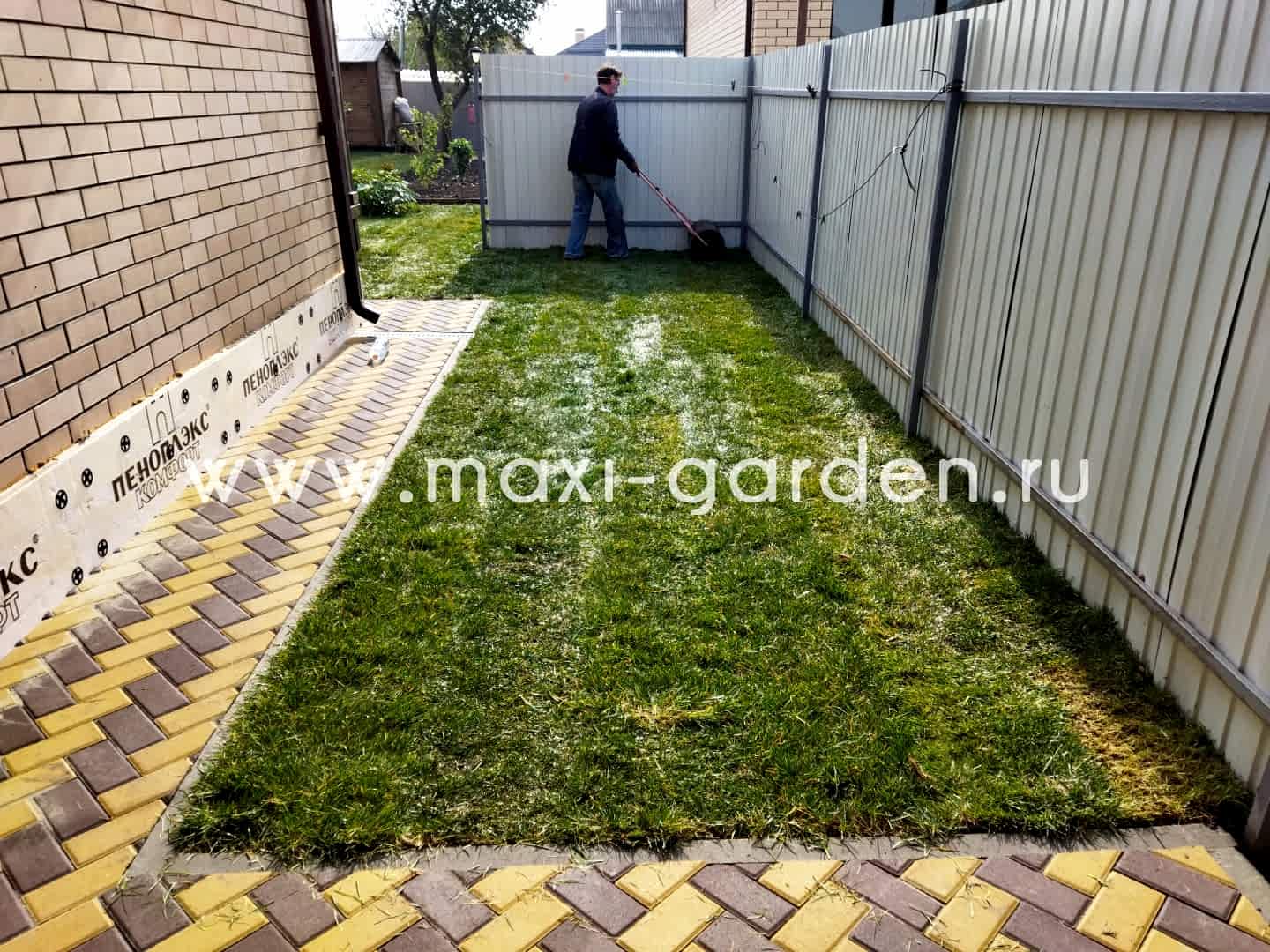 Удаление сорняка, выравнивание, укладка Pin-Up газона