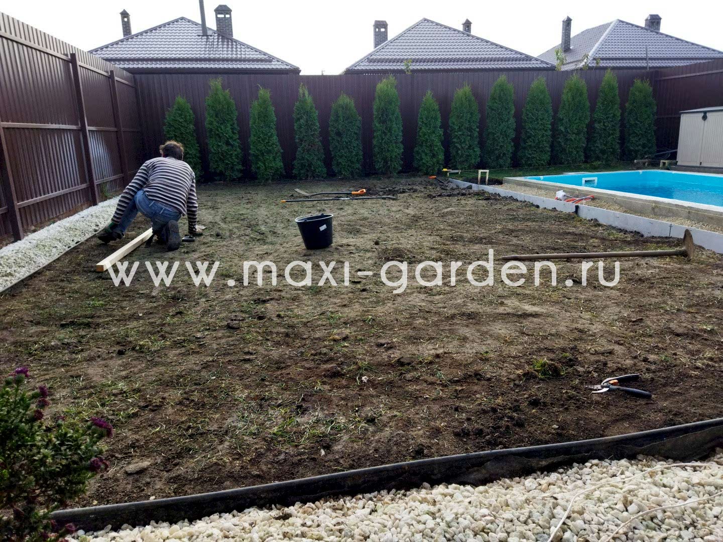 Pin-Up газон под ключ: снятие газона, дренаж участка и планировка, настил газона