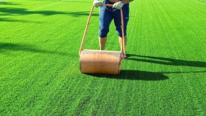 Когда газон в рулонах раскатан его Pin-Up прикатать специальным катком для того что бы он плотно прилегал к грунту, разгладился и принял правильную форму после рулона.